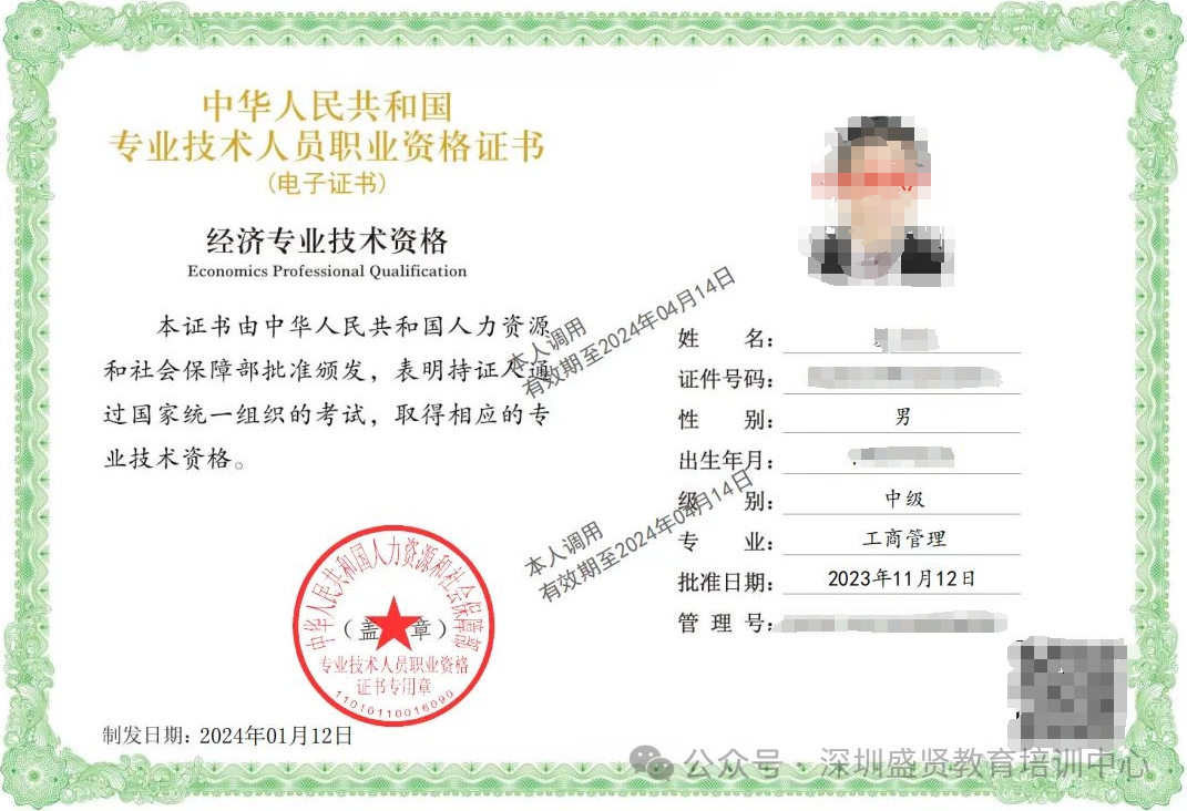经济师证书样本: