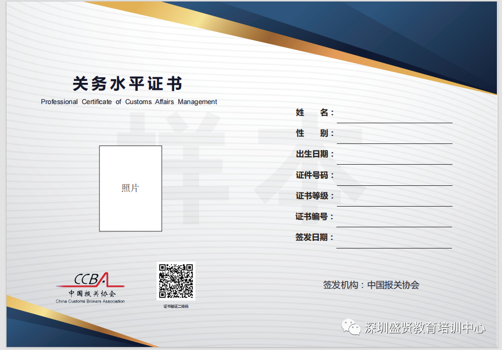 关务证书样本: